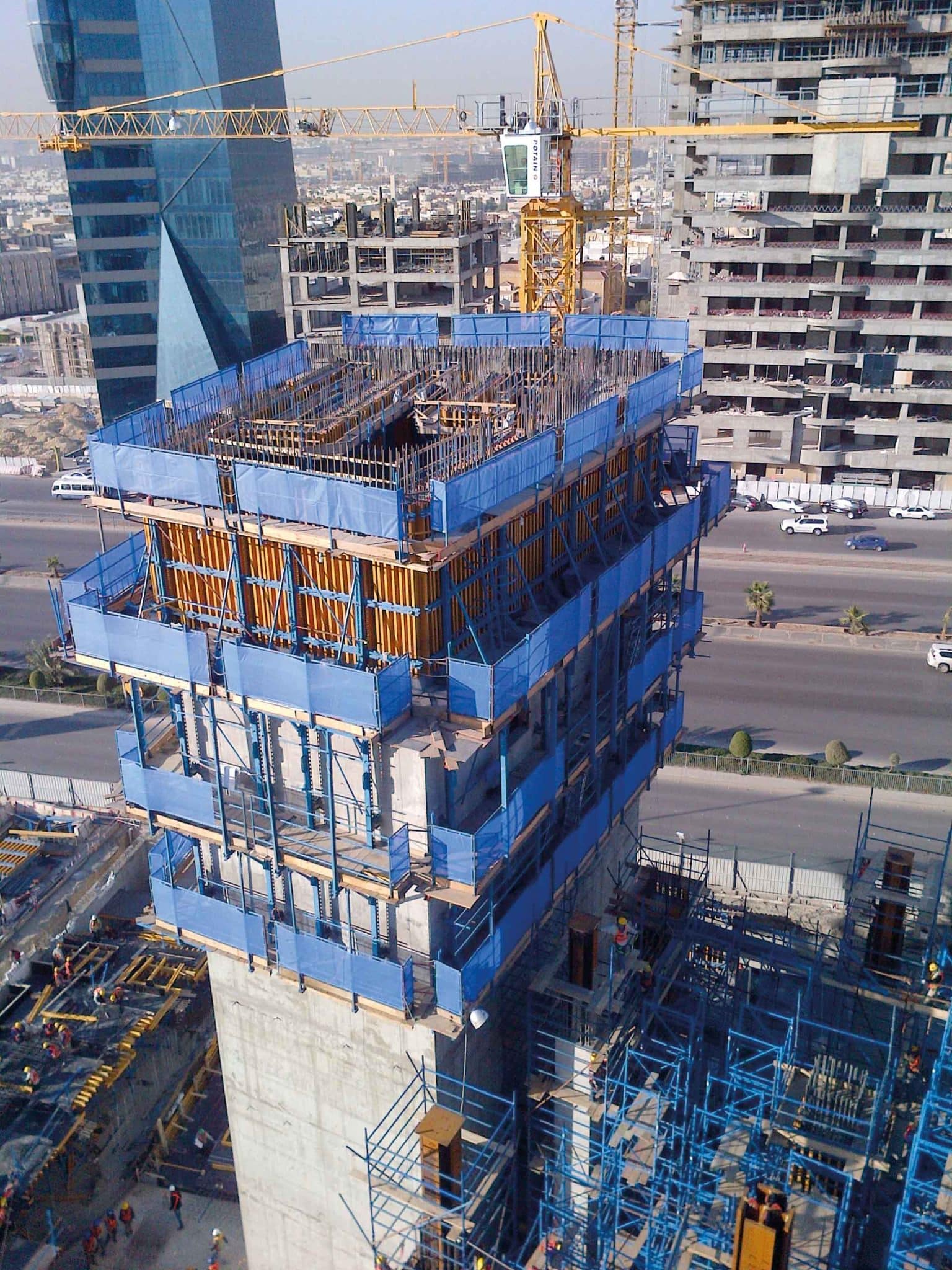 44 Katlı Kule Riyad’da, TMS’nin Climbex kendi tırmanan sistemi ile inşa edilmiştir.